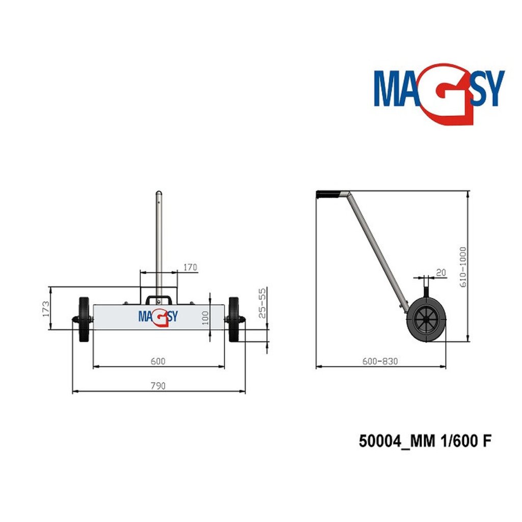 Magnetická metla model 1 s duralovým telom s hladkou povrchovou úpravou je zložená z vodiacej tyče, dvoch koliesok a zásobníku. Je opatrená feritovými magnetmi, ktoré dokážu pozbierať kovové predmety – šrouby, matice, pliešky, podložky, vruty, oceľové triesky, sponky do zošívačky alebo kancelárske sponky až do maximálnej výšky 25 mm. Dĺžka magnetickej plochy je dostatočných 60 cm a šírka 10