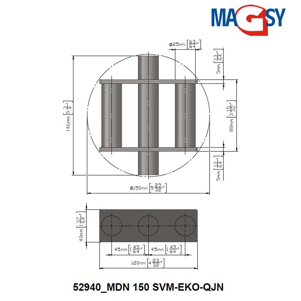 Magnet do násypky (80 °C, 13 500 Gs, 95 N) pr. 150 mm