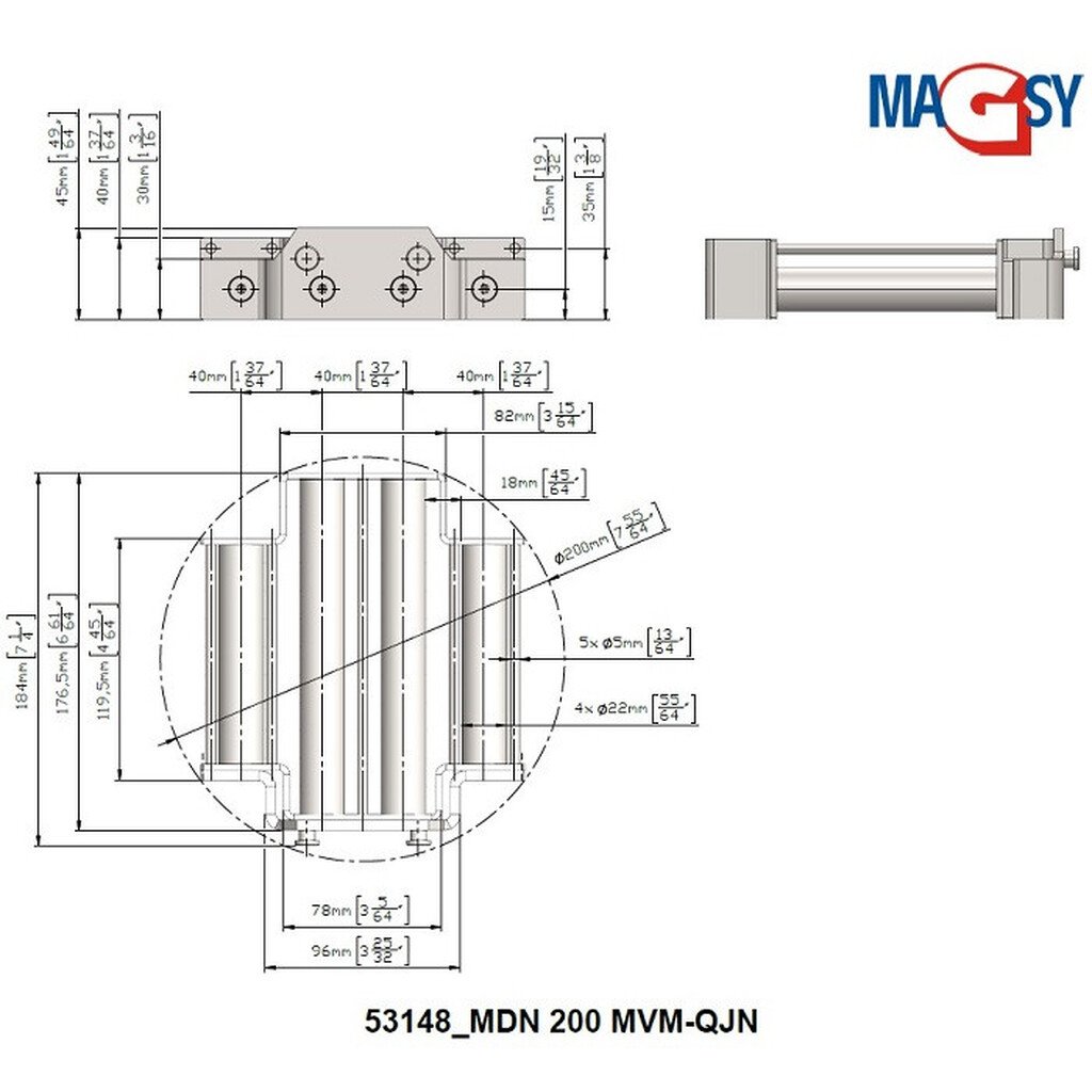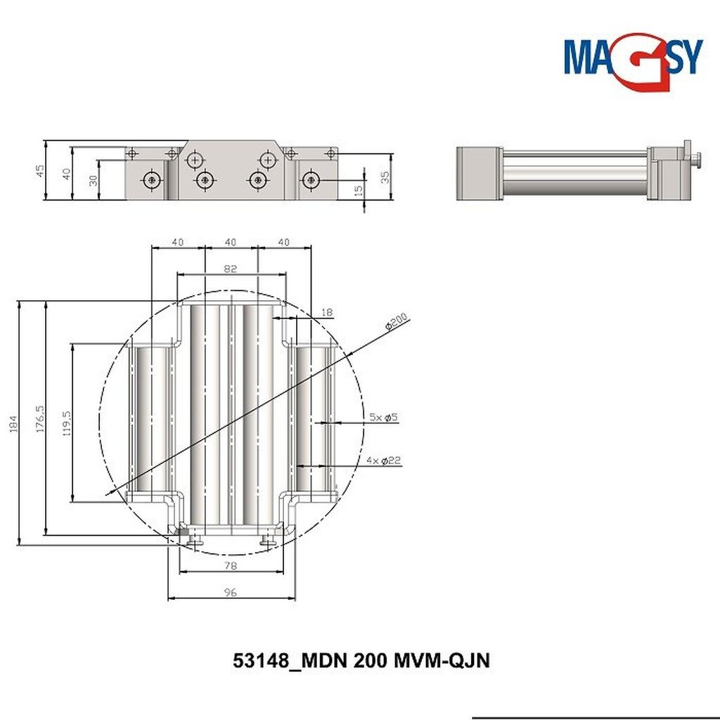 Ak umiestňujete magnet do násypky do vlastnej konštrukcie (box, násypka, žľab...), upozorňujeme, že takéto konštrukcie nesmú byť vyrobené z kovového (magnetického) materiálu. Hrozí nebezpečenstvo poranenia a výrazné zníženie magnetickej sily. Všetky konštrukcie, v ktorých je umiestnený magnet do násypky, musia byť vyrobené z nemagnetických materiálov. Minimálna vzdialenosť kovových (magnetických) konštrukcií od magnetu k zásobníku je 200 mm.