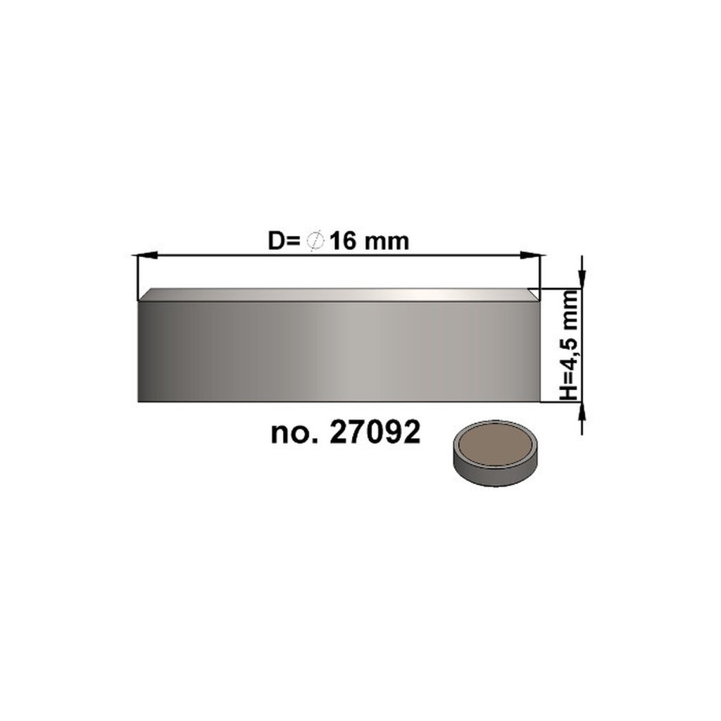 Magnetická šošovka pr. 16 x výška 4,5 mm, bez závitu