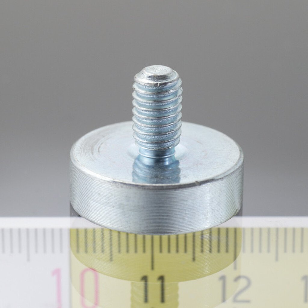 Magnetická šošovka so stopkou pr. 20 x výška 6 mm s vonkajším závitom M6, dlžka závitu 10 mm