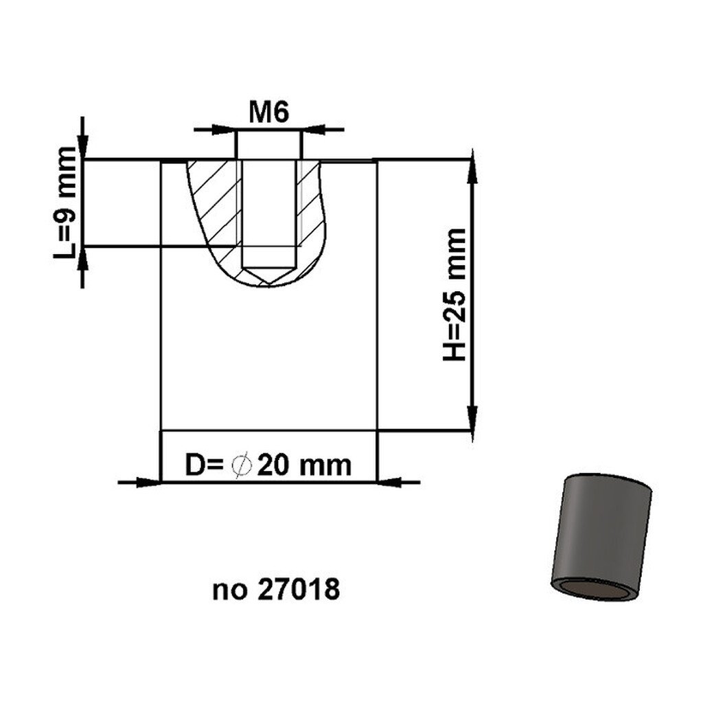 Magnetická šošovka valcová pr. 20 x výška 25 mm s vnútorným závitom M6. dĺžka závitu 9 mm