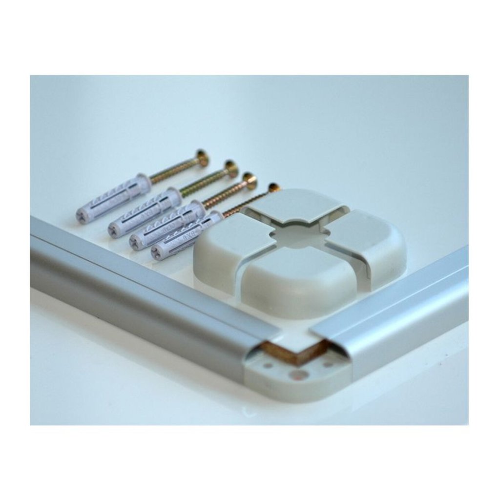 Táto magnetická tabula je tabula s klasickým bielym, lakovaným povrchom. Unikátny povrch má vlastnosti suchého oteru, preto na ňu môžete písať fixkami na tabulu, text potom ľahko zotriete hubkou alebo handričkou. Tabula má také magnetické vlastnosti, že na jej povrch môžete pripevniť magnety, rovnako ako príslušenstvo a ďalšie učebné pomôcky s magnetickým povrchom, ako sú magnetické rámčeky, mapy a plánovače. Rám je vyrobený zo strieborného hliníkového profilu zakončeného elegantnými šedými rohmi. Hodí sa do každého interiéru.