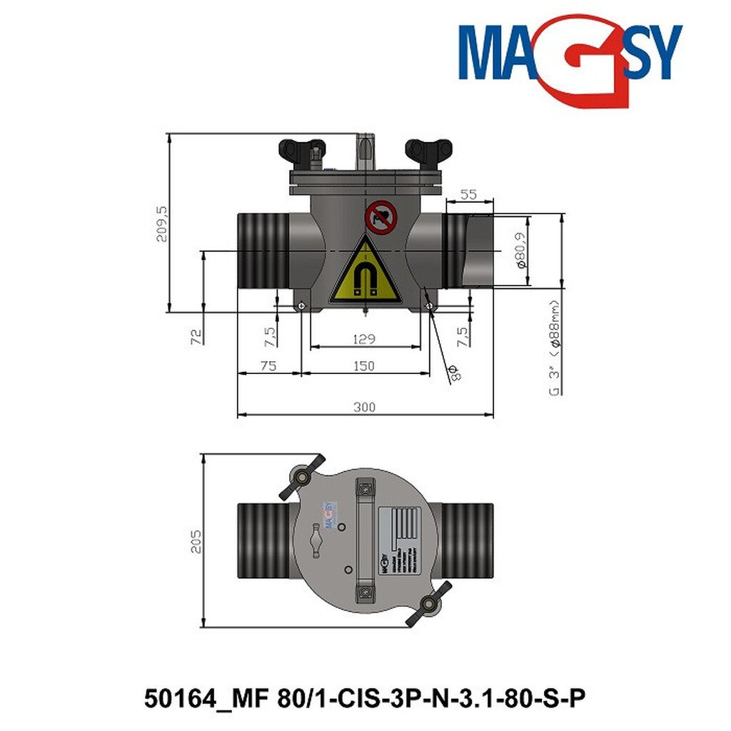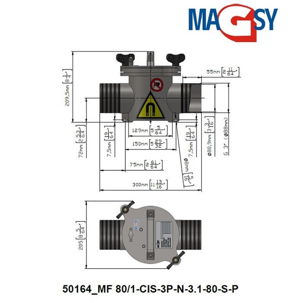 Magnetický separátor prietokový MF 80/1-CIS-3P-N-3-80-S-P