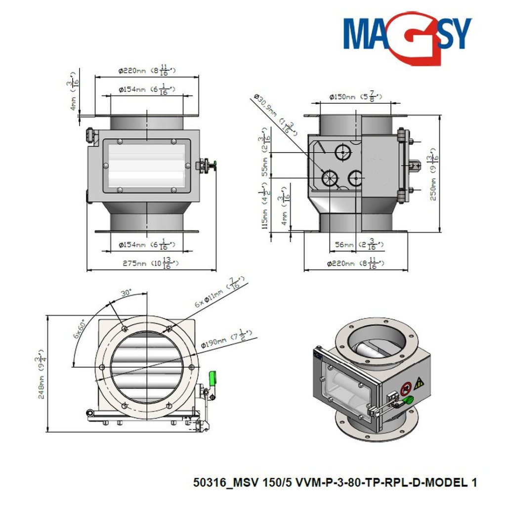 Magnetický separátor výsuvný MSV 150/5 VVM-P-3-80-TP-RPL-D-MODEL 1