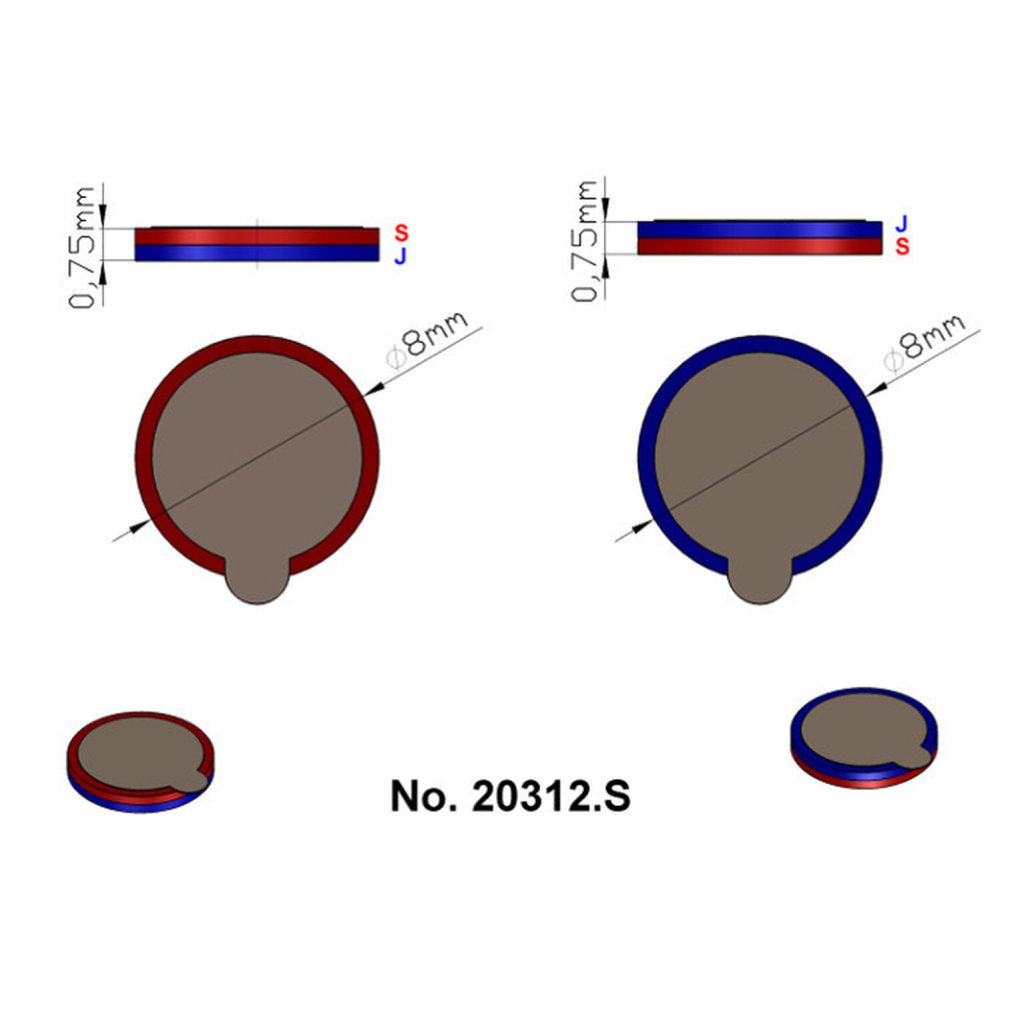Neodymový magnet so samolepkou valec pr.8x0,75 N 80 °C - SADA 2 ks, VMM4-N35