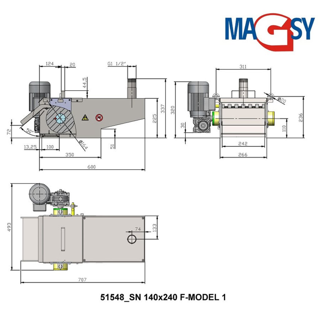Nádoba je osadená feritovými magnetmi, kovy sú automaticky stierané mosadznou stierkou. Celozakrytované prevedenie z dôvodu bezpečnosti práce.